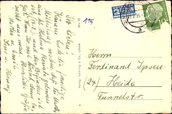 Zustand, siehe Scan, gelaufen, 1955 - ca 14 cm X 9 cm