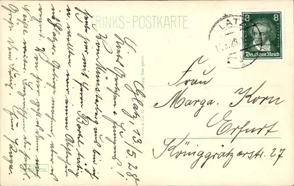 Zustand, siehe Scan, gelaufen, 1928 - ca 14 cm X 9 cm