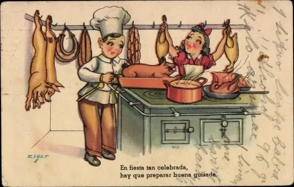 Ak Köche bereiten Festessen zu