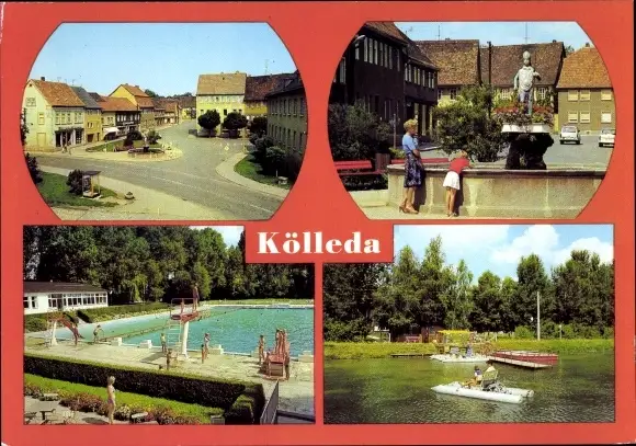 Ak Kölleda in Thüringen, Markt, Wipertusbrunnen, Bad, Gondelteich