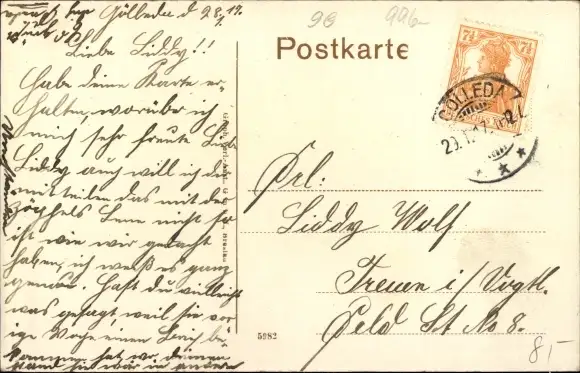 Zustand, siehe Scan, gelaufen, 1917 - ca 14 cm X 9 cm