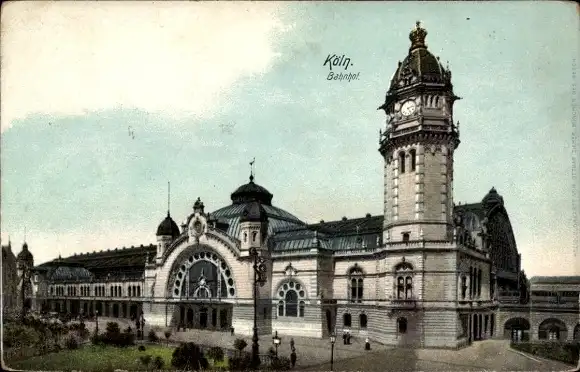 Ak Köln, Ansicht vom Bahnhof, Turmuhr, Eingangsbereich