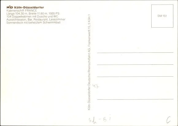 Ak Köln Düsseldorfer Rheindampferschiff France