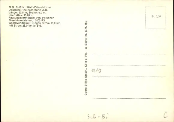 Ak Köln Düsseldorfer Rheindampfschifffahrt AG M.S. Rhein