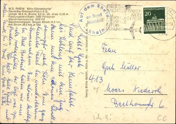 Ak Köln Düsseldorfer Rheindampfschifffahrt AG M.S. Rhein