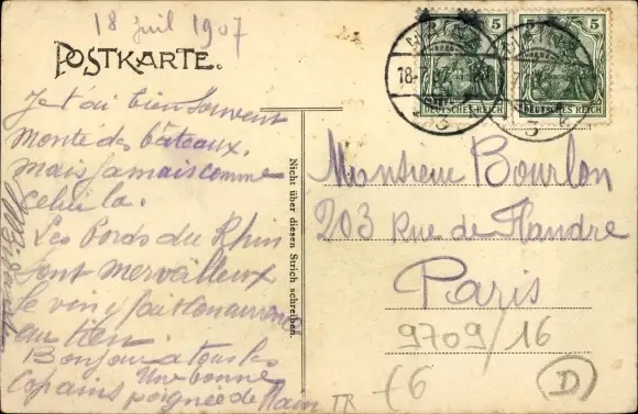 Zustand, siehe Scan, gelaufen, 1907 - ca 14 cm X 9 cm