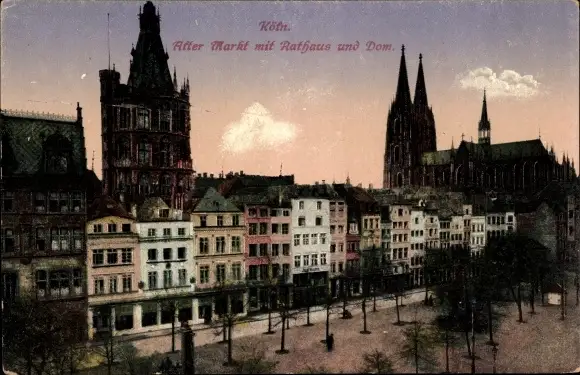 Ak Köln am Rhein, Alter Markt mit Rathaus und Dom
