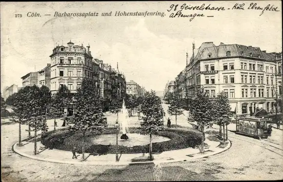 Ak Köln am Rhein, Barbarossaplatz, Hohenstaufenring, Springbrunnen, Straßenbahn