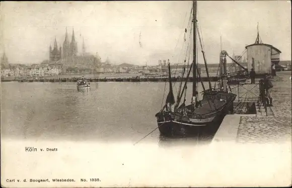 Ak Köln am Rhein, Blick von Deutz, Türme, Boote
