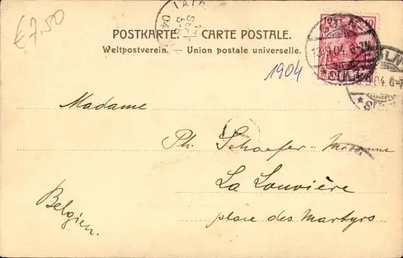 Zustand, siehe Scan, gelaufen, 1904 - ca 14 cm X 9 cm