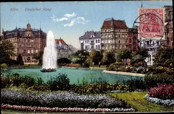 Ak Köln am Rhein, Deutscher Ring, Springbrunnen, Blumenrabatten