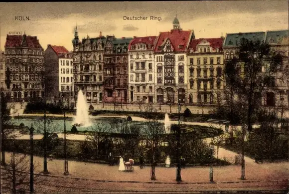 Ak Köln am Rhein, Deutscher Ring, Teich mit Springbrunnen