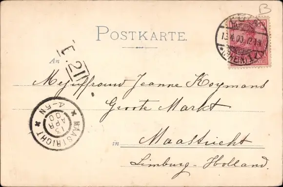 Zustand, siehe Scan, gelaufen, 1900 - ca 14 cm X 9 cm