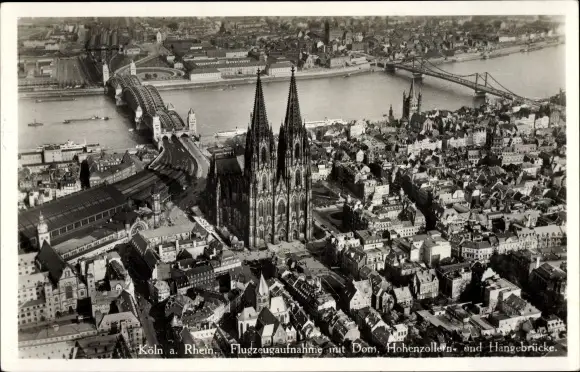 Ak Köln am Rhein, Dom, Hohenzollernbrücke, Hängebrücke, Fliegeraufnahme
