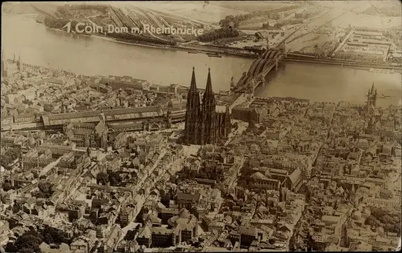 Ak Köln am Rhein, Dom und Rheinbrücke, Luftbild