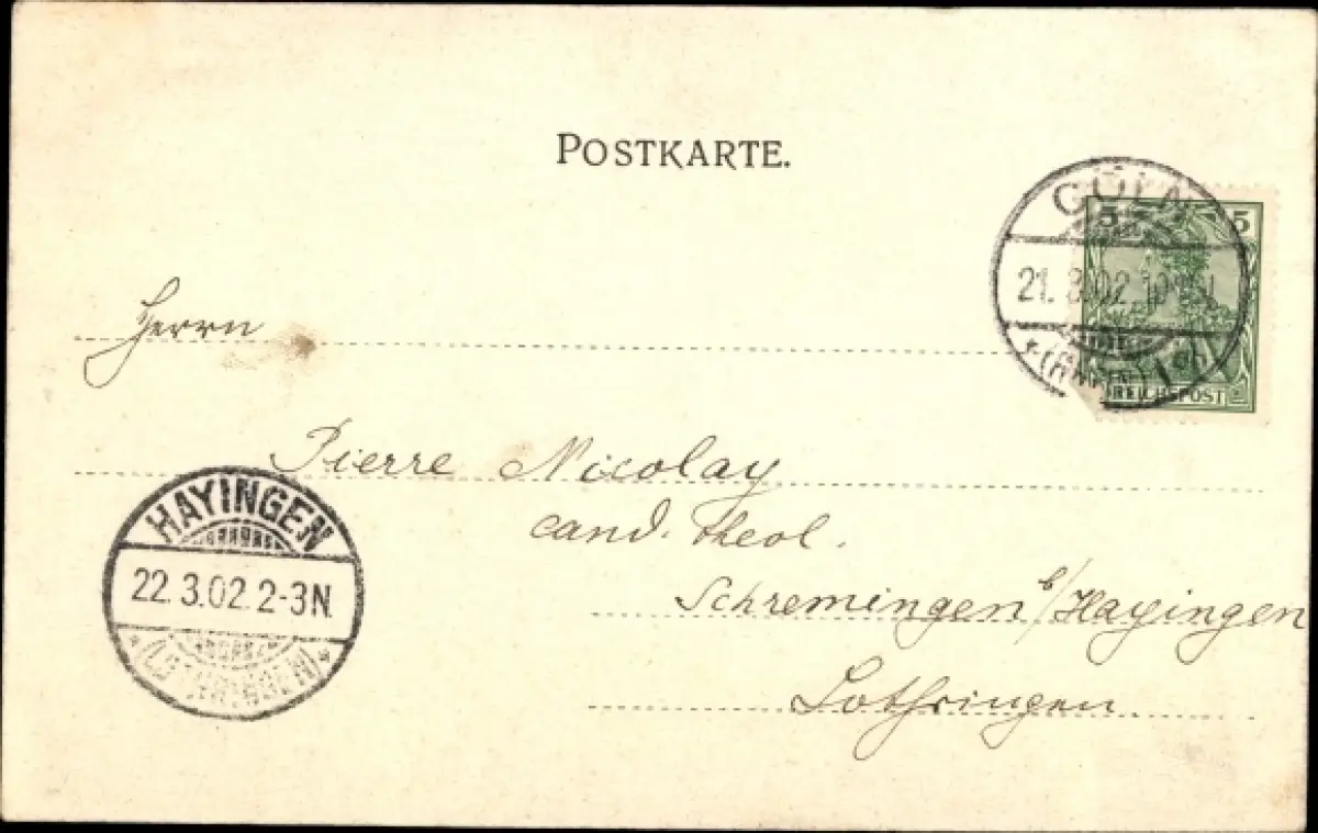 Zustand, siehe Scan, gelaufen, 1902 - ca 9 cm X 14 cm