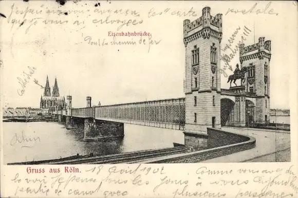 Ak Köln am Rhein, Eisenbahnbrücke, Kölner Dom, Rhein,