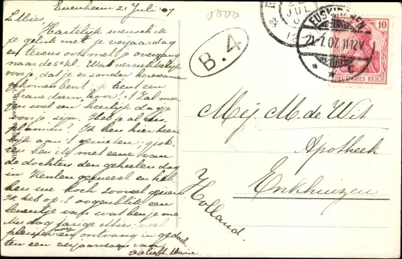 Zustand, siehe Scan, gelaufen, 1907 - ca 14 cm X 9 cm