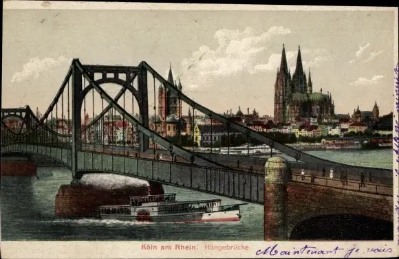 Ak Köln am Rhein, Hängebrücke, Kölner Dom, Schiff