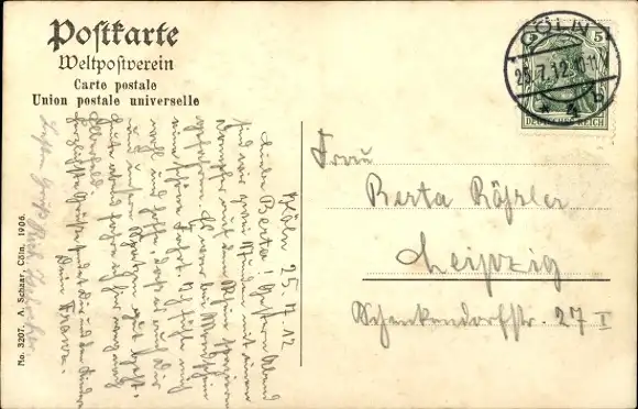 Zustand siehe Scan, gelaufen, 1912 - ca 14 cm X 9 cm