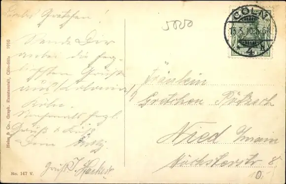 Zustand siehe Scan, gelaufen, 1910 - ca 14 cm X 9 cm
