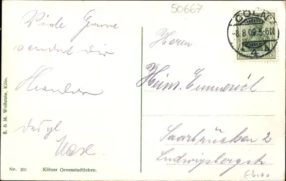 Zustand, siehe Scan, gelaufen, 1909 - ca 14 cm X 9 cm