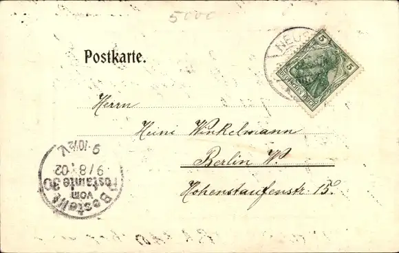 Zustand, siehe Scan, gelaufen, 1902 - ca 14 cm X 9 cm