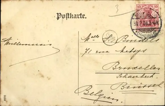 Zustand, siehe Scan, gelaufen, 1908 - ca 14 cm X 9 cm