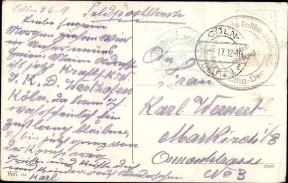 Zustand, siehe Scan, gelaufen, 1917 - ca 14 cm X 9 cm