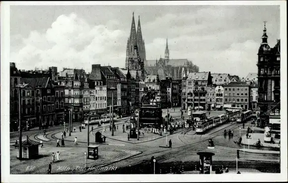 Ak Köln am Rhein, Heumarkt, Denkmal, Straßenbahn