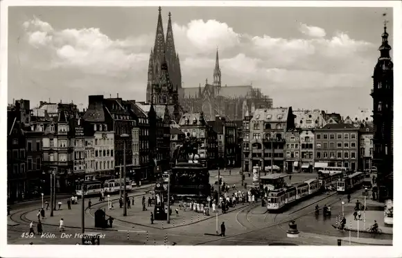 Ak Köln am Rhein, Heumarkt, Dom, Denkmal, Straßenbahnen