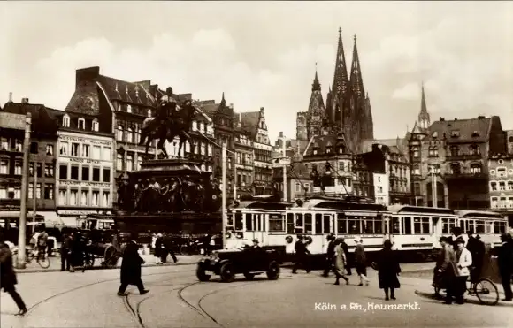 Ak Köln am Rhein, Heumarkt, Dom, Straßenbahnen