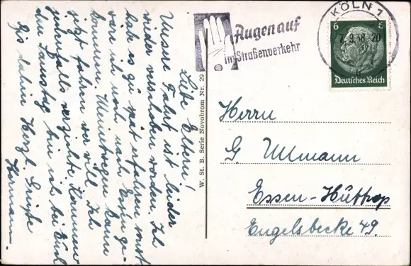 Zustand, siehe Scan, gelaufen, 1938 - ca 14 cm X 9 cm