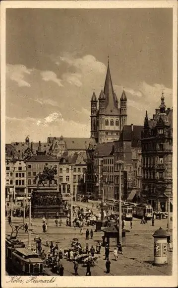 Ak Köln am Rhein, Heumarkt, Straßenbahn, Denkmal