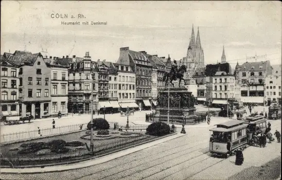 Ak Köln am Rhein, Heumarkt mit Denkmal, Straßenbahn, Kölner Dom