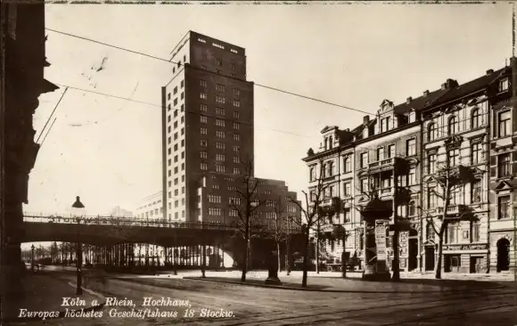 Ak Köln am Rhein, Hochhaus am Hansaring, Brücke