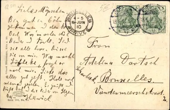Zustand, siehe Scan, gelaufen, 1910 - ca 14 cm X 9 cm
