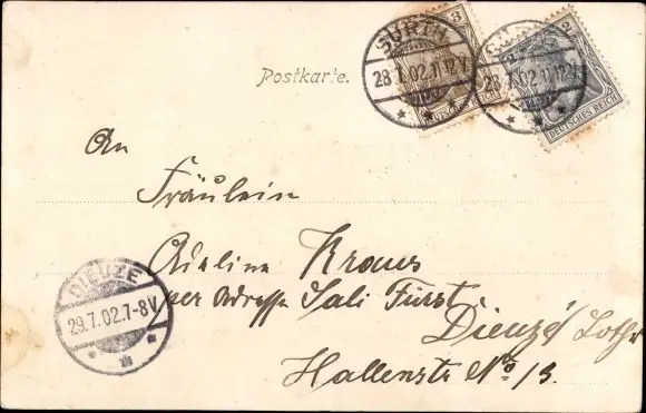 Zustand, siehe Scan, gelaufen, 1902 - ca 14 cm X 9 cm