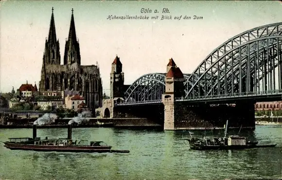 Ak Köln am Rhein, Hohenzollernbrücke, Dom, Dampfer