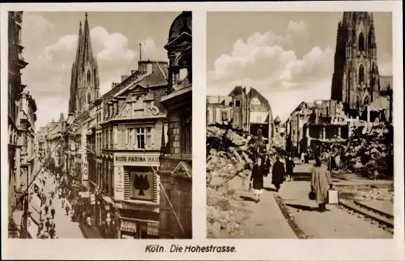 Ak Köln am Rhein, Hohestraße, vor und nach der Zerstörung, 2. WK