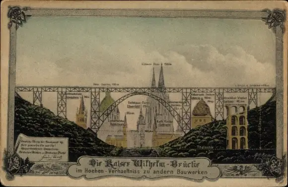 Ak Köln am Rhein, Kaiser Wilhelm Brücke, Dom, Rathausturm