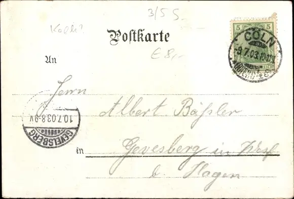 Zustand, siehe Scan, gelaufen, 1903 - ca 9 cm X 14 cm