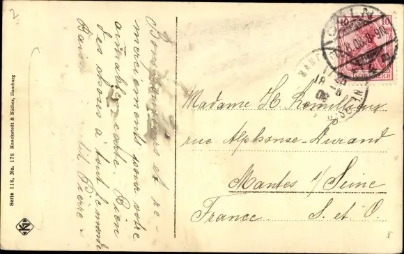 Zustand, siehe Scan, gelaufen, 1908 - ca 14 cm X 9 cm