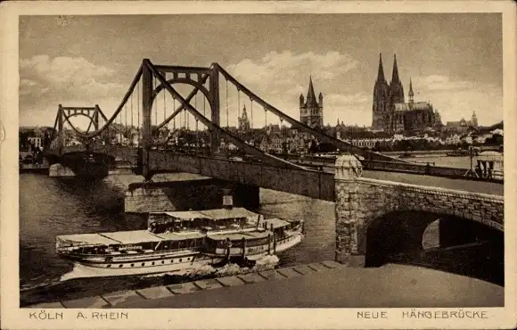 Ak Köln am Rhein, Neue Hängebrücke, Dampfer, Dom