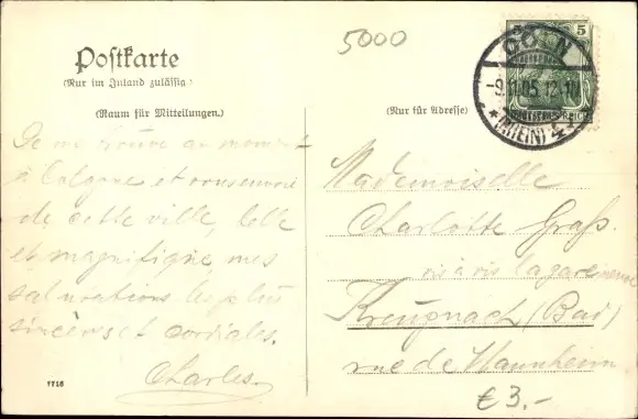 Zustand, siehe Scan, gelaufen, 1905 - ca 14 cm X 9 cm
