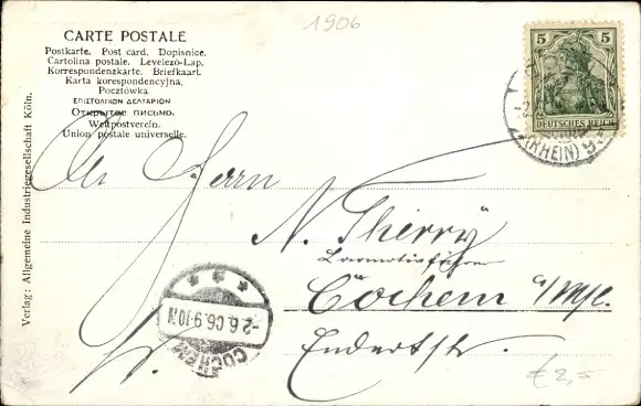 Zustand, siehe Scan, gelaufen, 1906 - ca 14 cm X 9 cm
