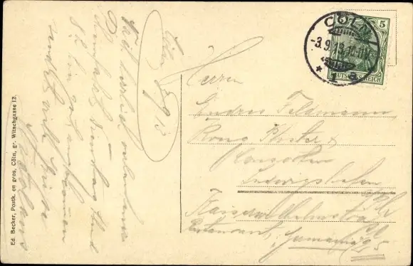 Zustand, siehe Scan, gelaufen, 1913 - ca 14 cm X 9 cm