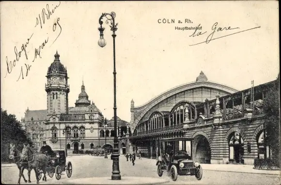 Ak Köln am Rhein, Partie am Bahnhof, Arkaden, Kutschen