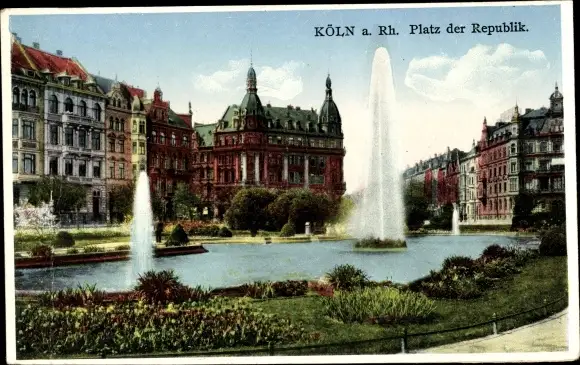 Ak Köln am Rhein, Platz der Republik, Springbrunnen