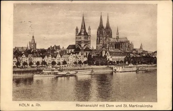 Ak Köln am Rhein, Rheinansicht mit Dom und St. Martinskirche